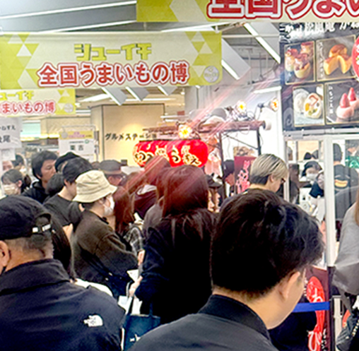 食催事「シューイチ全国うまいもの博」企画・プロデュースを行っています。土日の朝番組「シューイチ」や、日テレ系列各局の番組と連携。